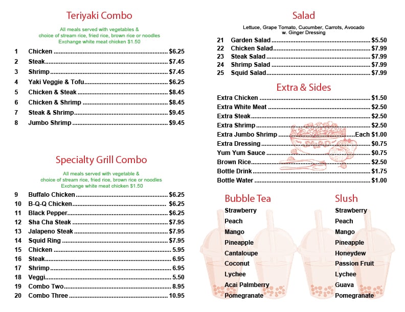 Choice of: chicken, pork, shrimp, beef or vegetable.